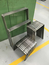 This project began as a research project into the industrial manufacturing process of crush bending, exploring a process renowned for its cost efficiency and the added strength it gives to metal. The process is commonly used in mass manufactured industrial objects, but not usually celebrated as the main feature of a product. I wanted to commend its simplistic functional form and aesthetic beauty it leaves on the metal as a by product of the process.